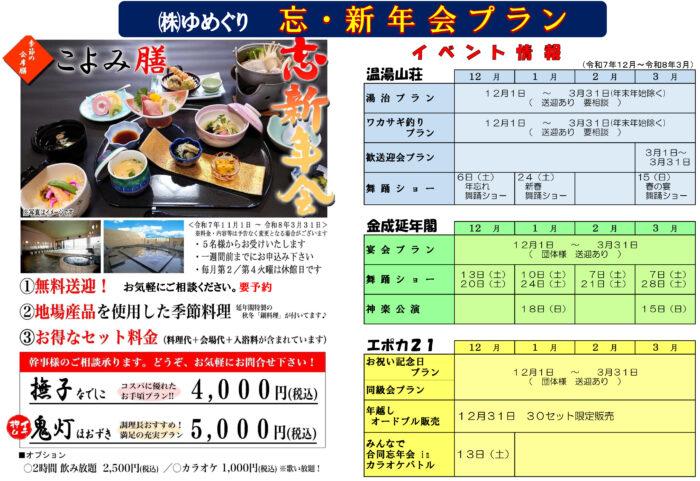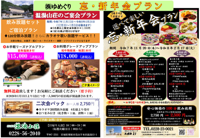 なお、ご宿泊や日帰りのご利用は、同グループ花山温湯山荘・金成延年閣